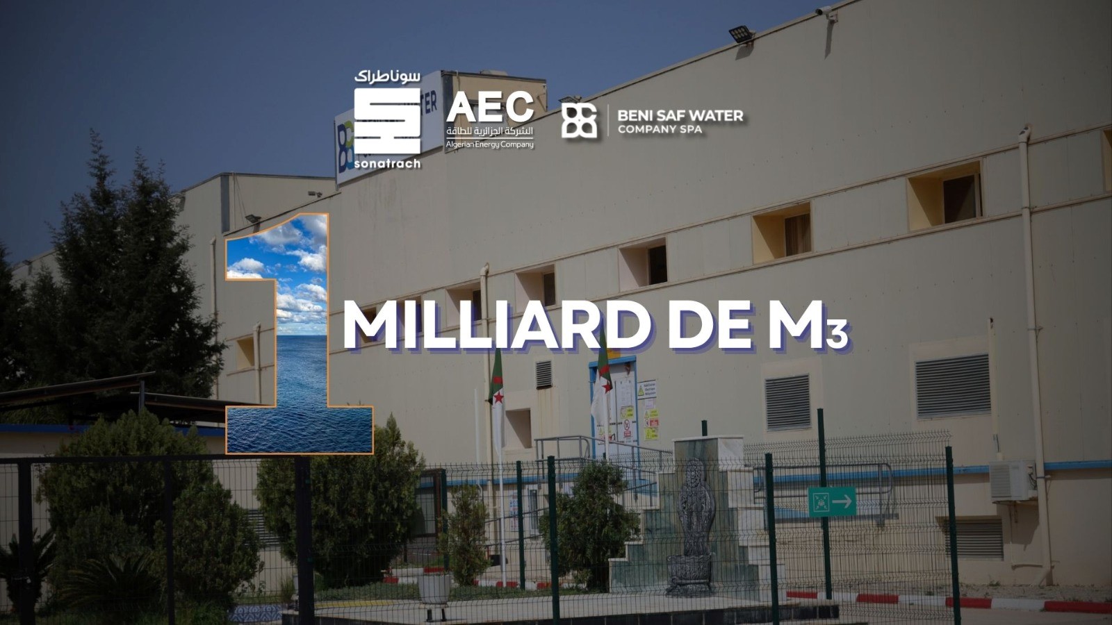 يُعلن مجمع سوناطراك أنه قد تم اليوم على الساعة 12:26، تجاوز مستوى مليار متر مكعب من المياه المحلاة على مستوى محطة شط الهلال لتحلية مياه البحر ببني صاف بولاية عين تموشنت، وذلك منذ دخولها حيز الخدمة سنة 2009