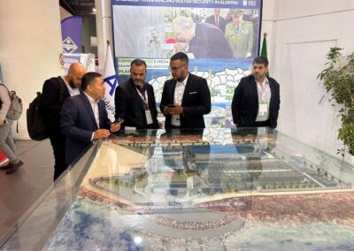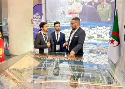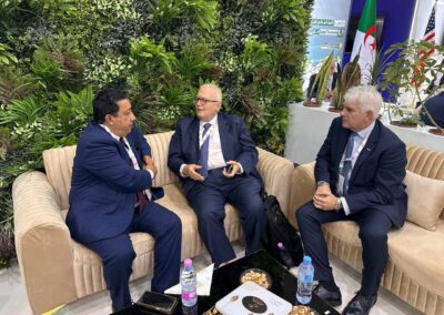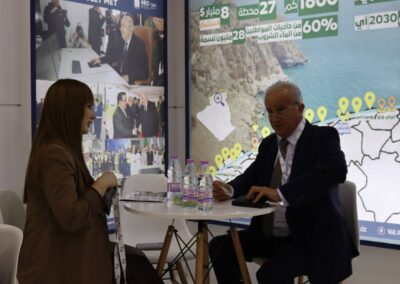 كما عرفت المشاركة تنظيم اجتماعات نوعية ترأسها الرئيس المدير العام للشركة، السيد لحسن باده، تم خلالها بحث سبل ترقية الشراكات المحلية والدولية، بما يسهم في رفع نسبة الإدماج الوطني في قطاع تحلية مياه البحر، وتعزيز توطين الخبرات والتقنيات الأجنبية داخل الجزائر، في إطار رؤية استراتيجية تهدف إلى بناء صناعة وطنية مستدامة.