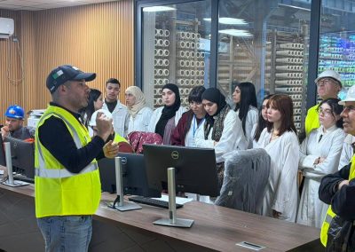 وخلال هذه الزيارة، أتيحت للطلبة فرصة مميزة للاطلاع عن قرب على مختلف المراحل التقنية التي تمر بها عملية تحلية مياه البحر، بدءًا من استقبال المياه ومعالجتها الأولية، وصولًا إلى عمليات التحلية باستخدام أحدث التقنيات المعتمدة، وانتهاءً بمرحلة التوزيع. كما قام الإطارات والمهندسون المشرفون على المحطة بتقديم شروحات وافية ومفصلة حول آليات التسيير، ونظم المراقبة، والتحديات التقنية التي تواجه هذا النوع من المنشآت الحيوية، مع تسليط الضوء على أهمية الابتكار والتطوير المستمر في هذا المجال.